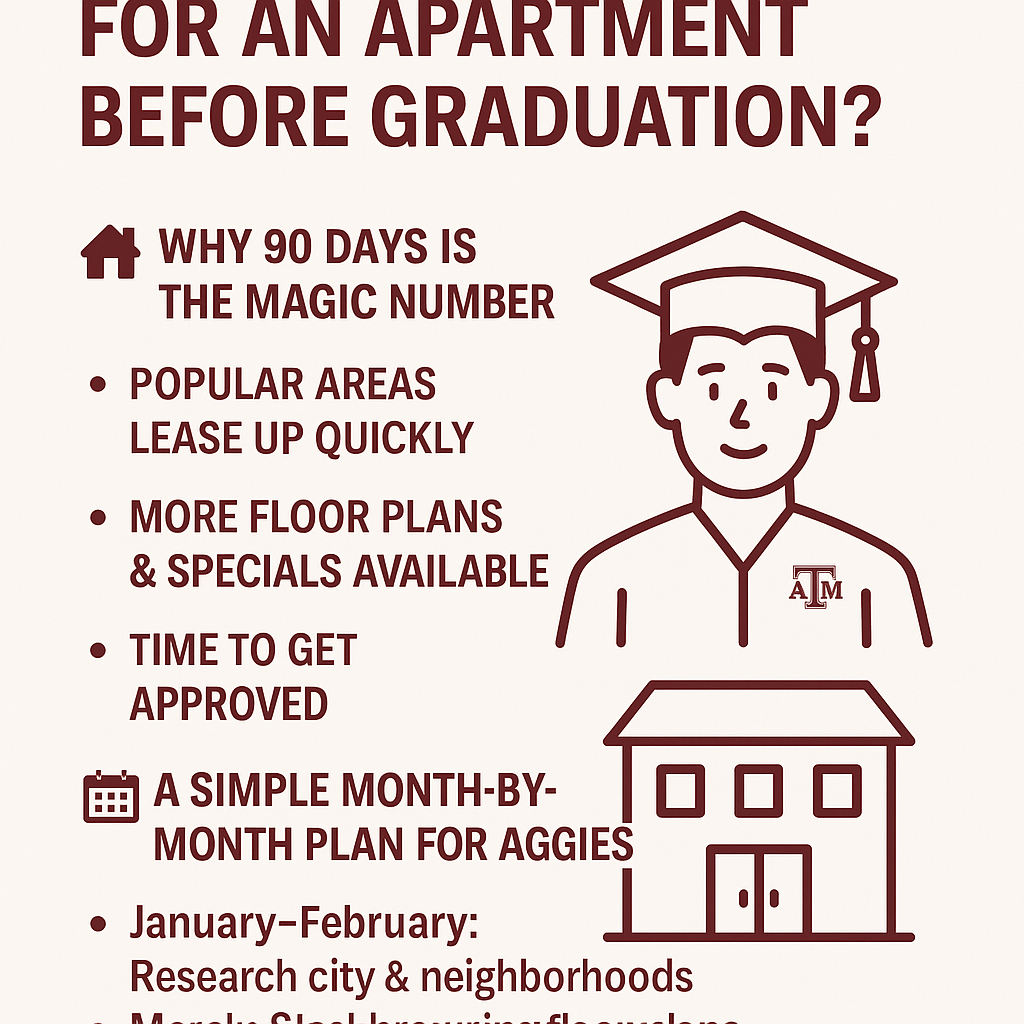 How Soon Should I Start Looking for an Apartment Before Graduation? Graduating from Texas A&M University is one of the biggest moments in your life 🎓. You’ve spent years building friendships, late-night studying, and cheering at Kyle Field, and now a whole new adventure is waiting — your next home in a brand-new city! Whether …